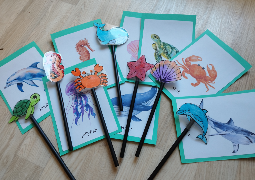 Flashcards zná každý, ale ne každý ví, jak z nich udělat zábavu. Můžete s nimi pracovat v kroužku, ale také děti zvednout a vymýšlet různé hry v prostoru. Z tohoto důvodu doporučuji vytvořit obrázky co největší, aby je děti dobře viděly i z dálky. S obrázky můžete využít i různé další pomůcky, například míčky, šátky nebo kruhy.