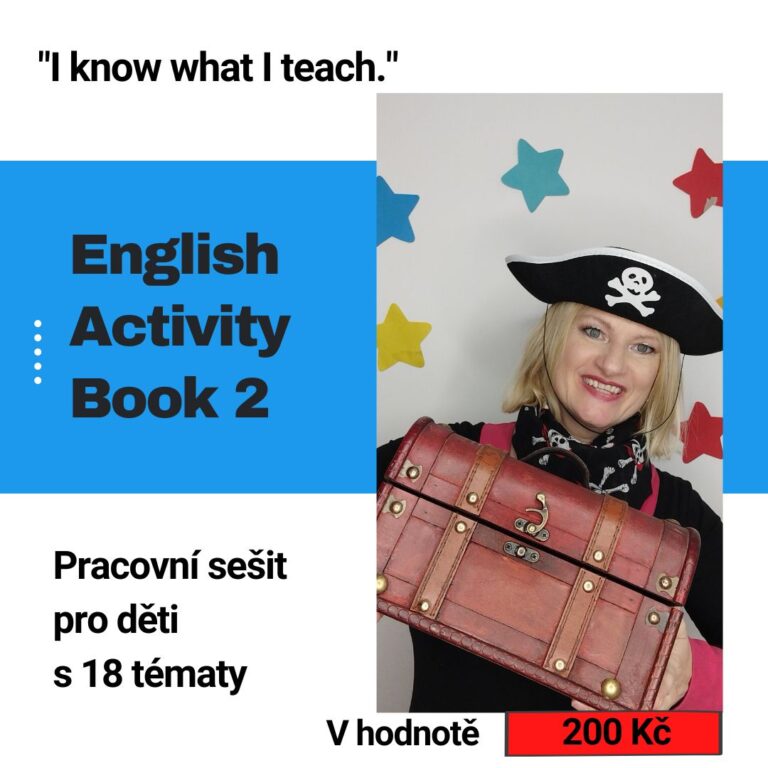 V bonusové části ode mne získáte nový English Activity Book 2, kde je 18 témat pro děti v pokračujících kurzech zpracovaných do zábavných úkolů. Tyto děti angličtinu již v minulém roce měly ať už s vámi nebo s někým jiným a nyní si s vámi budou rozšiřovat slovní zásobu a pracovat na mluvení.